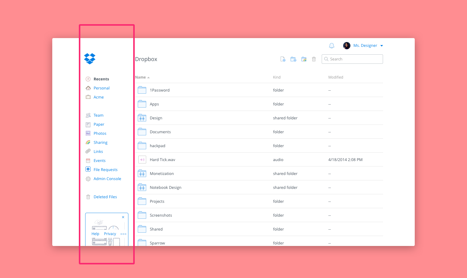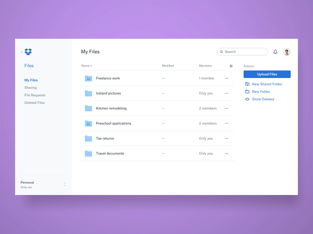 Dropbox is the home for your most personal files and the vault for your most important work. When these spaces merge together, not only is the privacy of home compromised, so is the security of work. Personal photos from that beach trip end up sitting next to your team financials. Neither you nor your team should be happy about that. This is also a problem from a business perspective. Business features that simply don’t exist for personal accounts are forced to show up in a semi-available state within merged views.