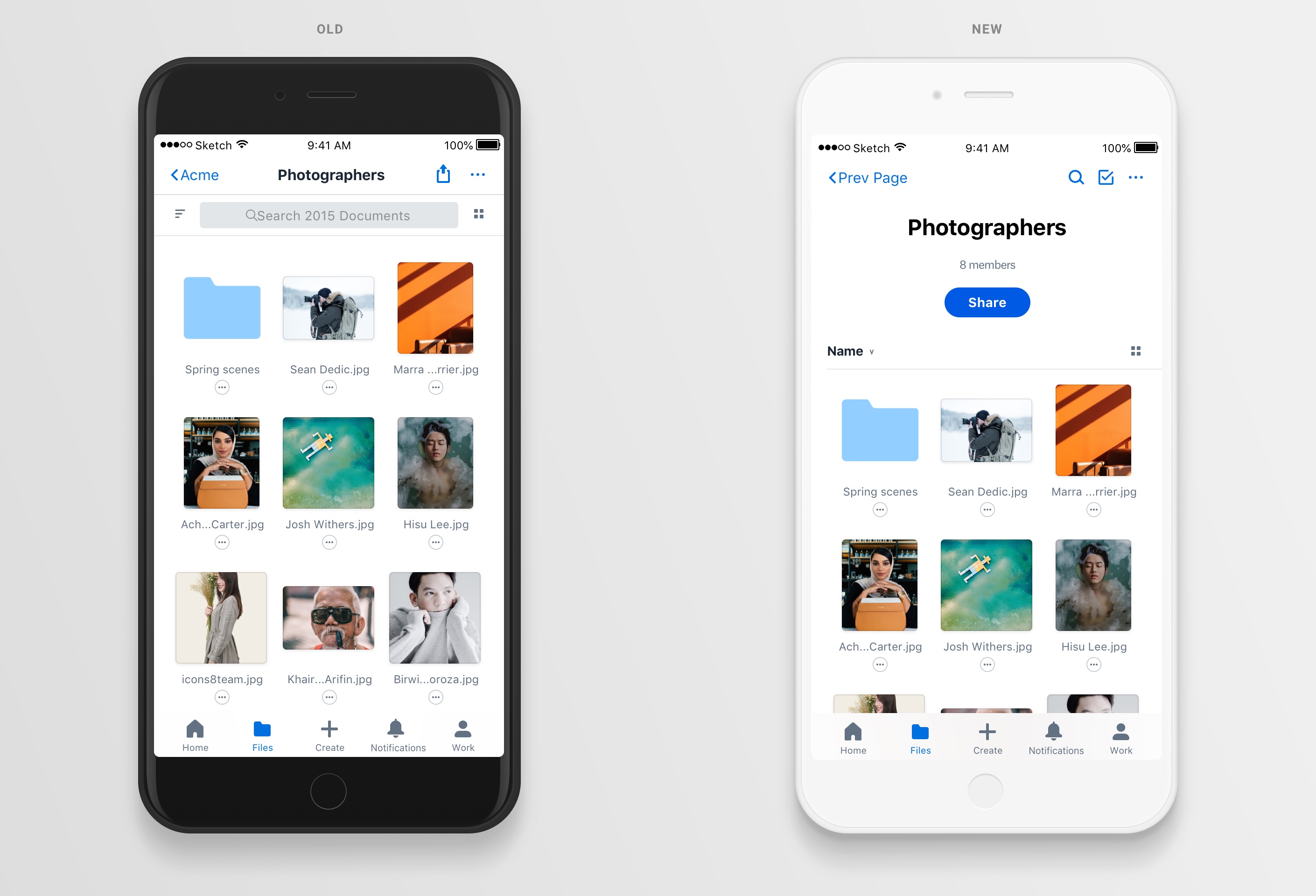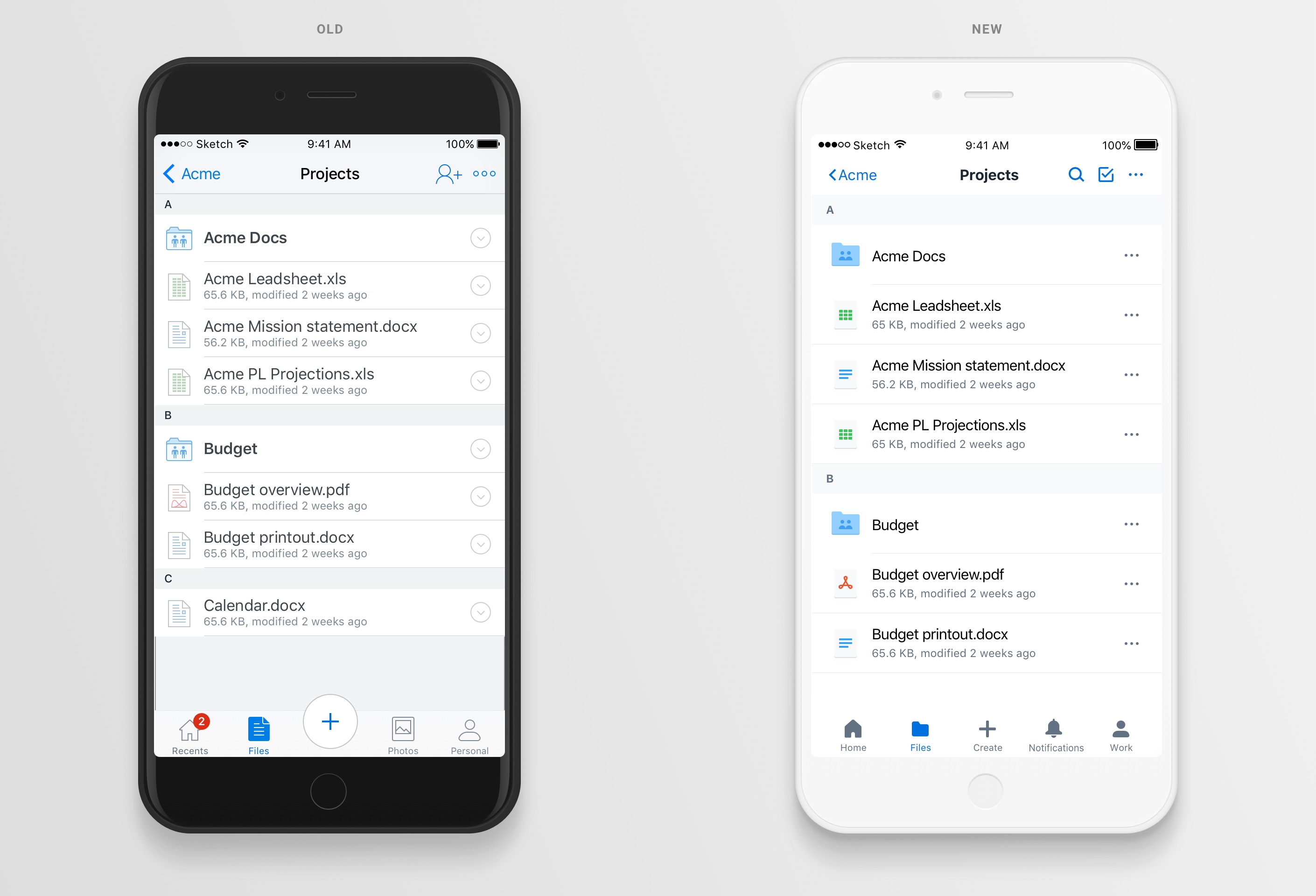 Collaboration shouldn’t be hampered by platform differences. With the redesign of Dropbox, we’ve purposefully made the core experience of iOS and Android the same so teammates can experience Dropbox like a common language.